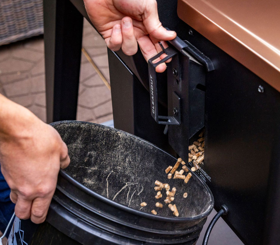- La trémie de 8,5 kg contient suffisamment de granulés pour les cuissons les plus basses et les plus lentes, et dispose d’un système de vidange intégré pour un nettoyage simplifié.