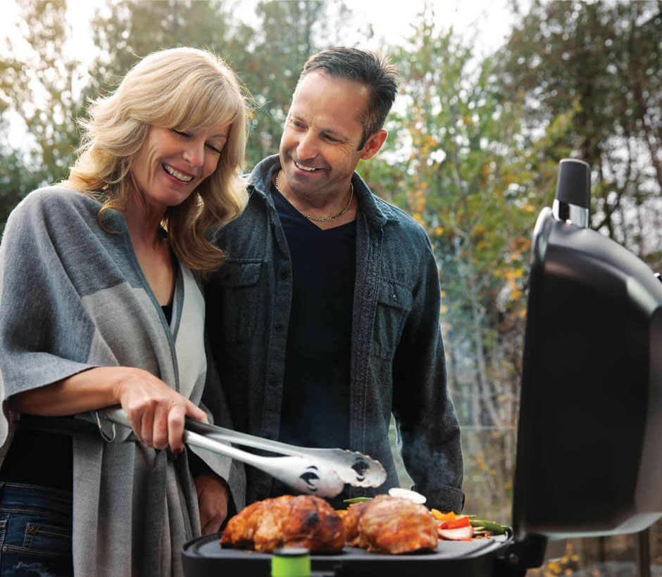Le barbecue électrique portable Travel Q est élégant, entièrement noir, avec un couvercle en fonte d'aluminium à sommet élevé qui vous permet de cuisiner vos grillades à un niveau gastronomique. La conception coupe-vent permet de conserver la chaleur.