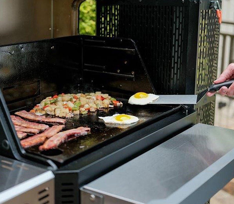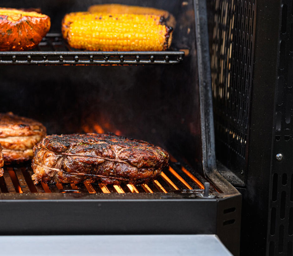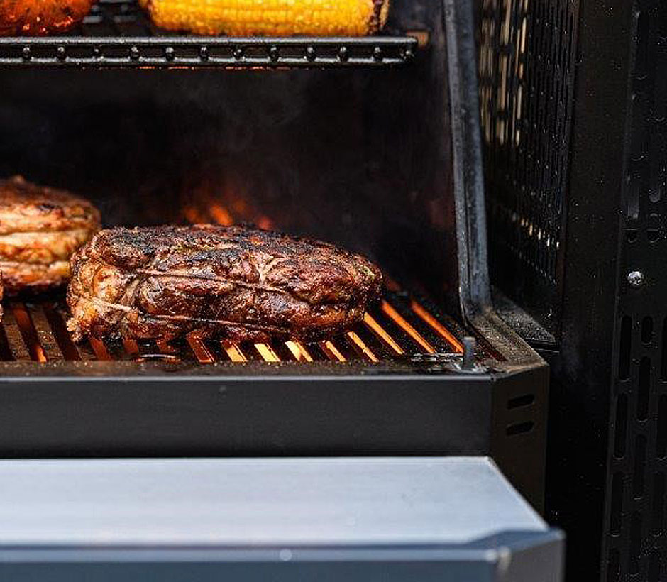 - Comprend une grande plaque de cuisson et des grilles en fonte pour un fumage lent et doux ou une saisie à haute température grâce au DigitalFan numérique pour un contrôle précis de la température.