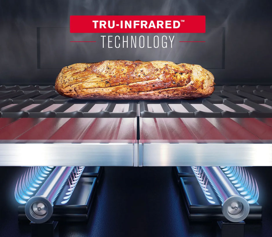 Grâce à son système TRU‑Infrare Technology breveté, vos grillades restent jusqu'à 50 % plus juteuses. Avec son brûleur Sear-zone puissant et de haute performance, vous obtiendrez encore plus de puissance et des températures pouvant atteindre les 900 °C. Grâce à ce système vous pourrez obtenir des steaks croustillants en un tour de main !