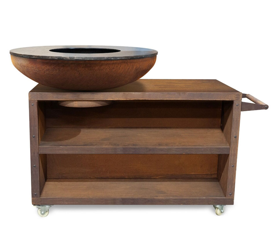 À côté de la cuve de cette cuisine d'extérieur mobile, vous trouverez un emplacement pour notre planche à découper BonFeu. Sous le plan de travail, vous pourrez ranger divers accessoires de cuisine et des bûches supplémentaires. Grâce à ses roues stables et maniables, le BonBiza Island se déplace facilement où bon vous semble dans votre jardin.
