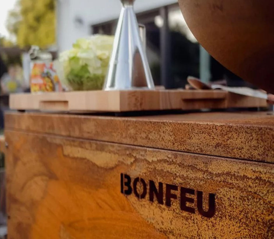 Associé aux accessoires de cuisine BonFeu, le BonBiza Island devient un véritable atout culinaire pour votre espace extérieur.