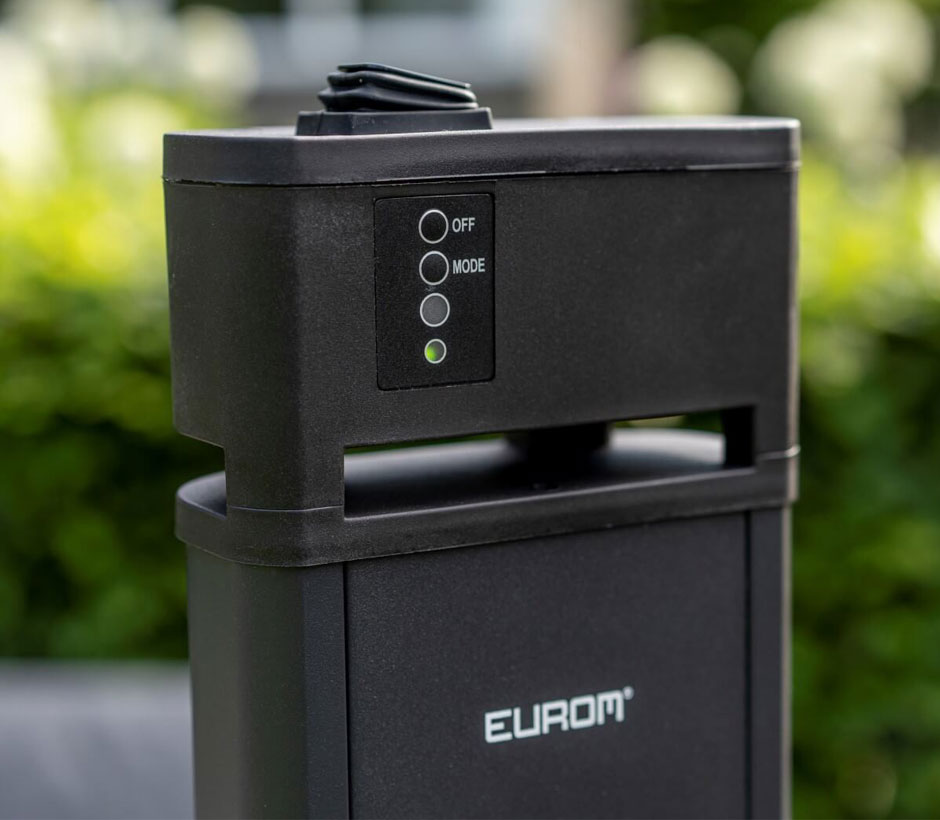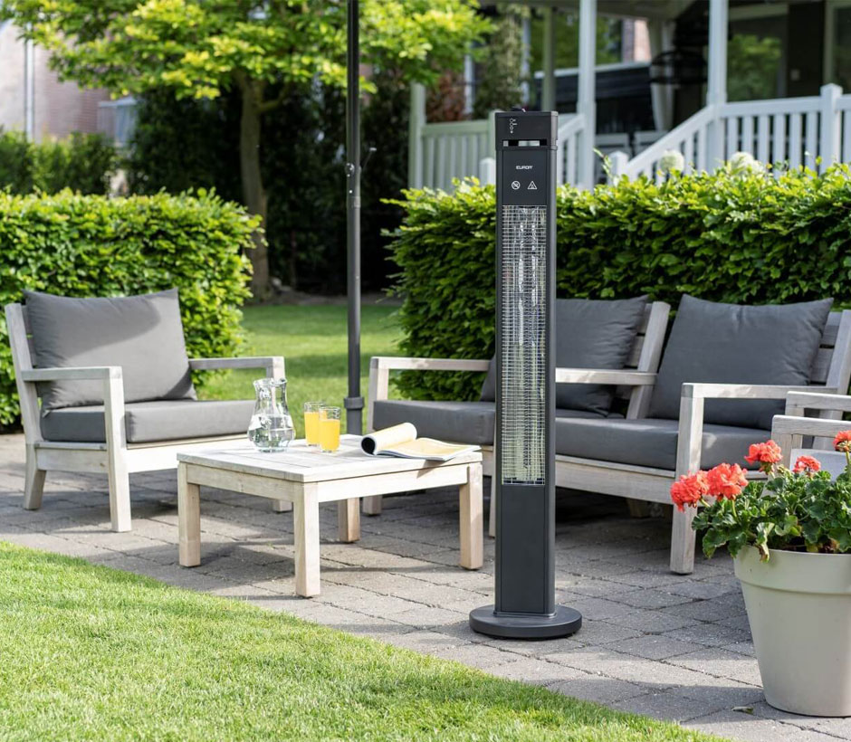 Le Q Tower 2000 RCD est également pivotant, idéal pour une utilisation en extérieur, à côté d'un salon de jardin ou sur la terrasse. Ce chauffage de terrasse est utilisable sous la pluie (IP65).