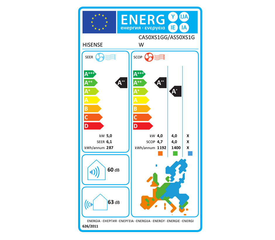- Efficacité énergétique A++ : Ce modèle affiche une classification énergétique A++ en refroidissement et A+ en chauffage, garantissant une faible consommation d’énergie sans compromis sur la puissance.