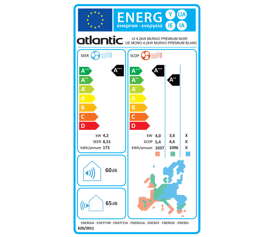 Climatiseur réversible Atlantic Murao Premium Noir 4.2 kW avec unité extérieure
