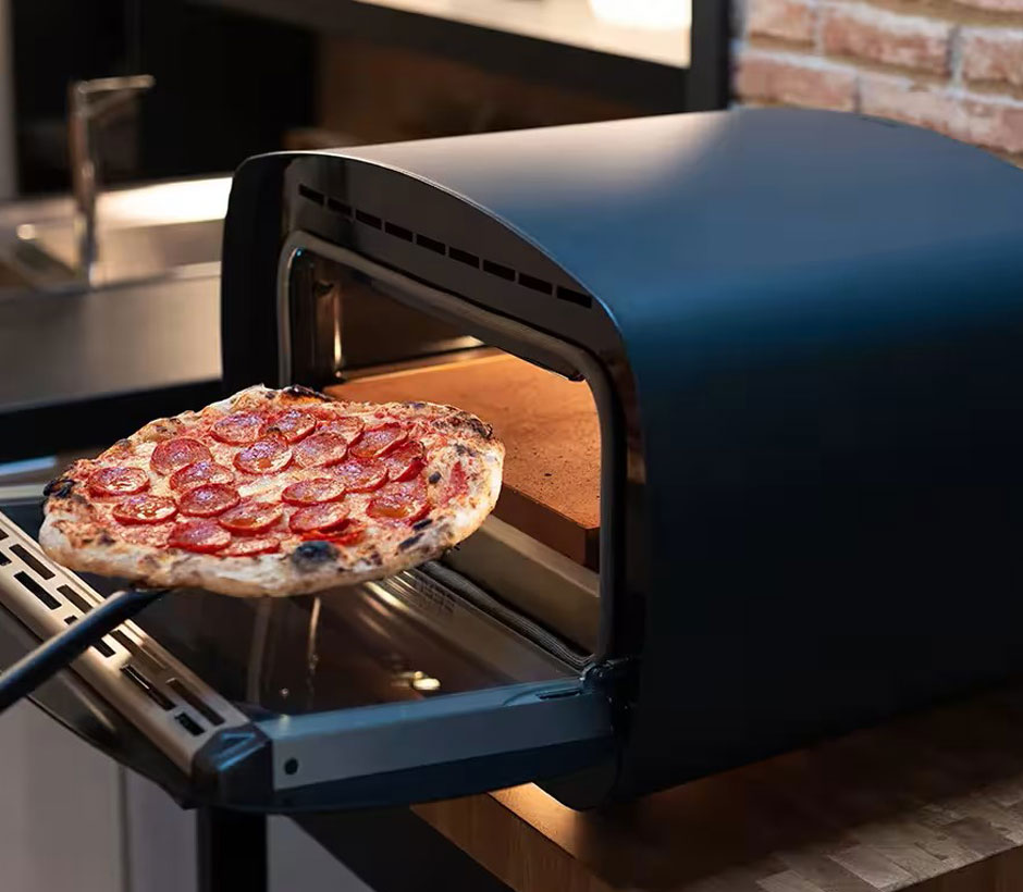 Il peut atteindre des températures très élevées, jusqu’à 400°C, la limite maximale autorisée pour une certification en intérieur. Cela garantit une cuisson efficace, similaire à celle d’un four à bois, et une pizza prête en seulement 2 minutes.