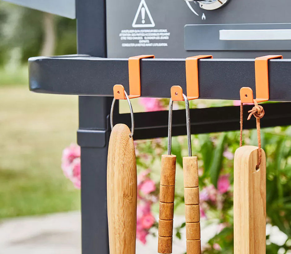 Nombreuses fonctionnalités : la plancha Margaux vous offre la possibilité de choisir votre mode de cuisson grâce à son grill en acier émaillée de 43,8 x 36,5 cm et sa plaque en acier de 42,2 x 36,2 cm. Vous pourrez réaliser de nombreuses recettes à base de viandes, légumes, poisson... Servir des repas variés et savoureux. Equipée d'un panier pour ranger vos épices, de crochets pour suspendre vos accessoires, de 2 tablettes rabattables pour poser vos préparations et accessoires.