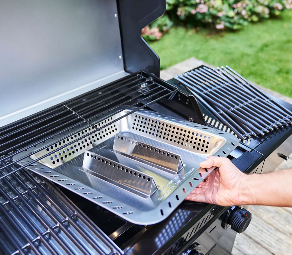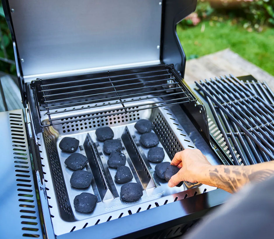 Le plateau à charbon Essential transforme le barbecue à gaz Essential en un barbecue hybride