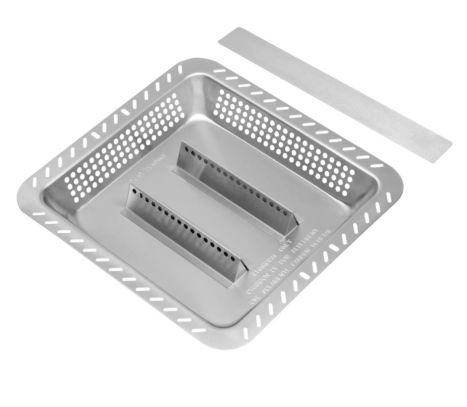 Notre système de flux d'air innovant garantit une répartition uniforme de la chaleur et un temps de grillades accru. Le plateau à charbon de bois en acier inoxydable s'adapte à tous les modèles de barbecues Essential.