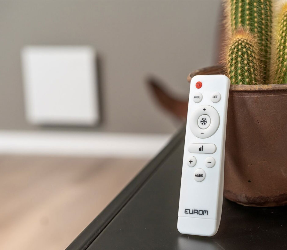 Le panneau infrarouge Eurom Mon Soleil DSP 400 avec Wi-Fi est un panneau infrarouge de 400 watts entièrement sans cadre. Idéal pour un montage mural, ce modèle design est équipé d'un thermostat intégré. Il est également possible d'ajouter un thermostat supplémentaire. Ce radiateur infrarouge se contrôle via l'écran tactile ou l'application Eurom Smart.